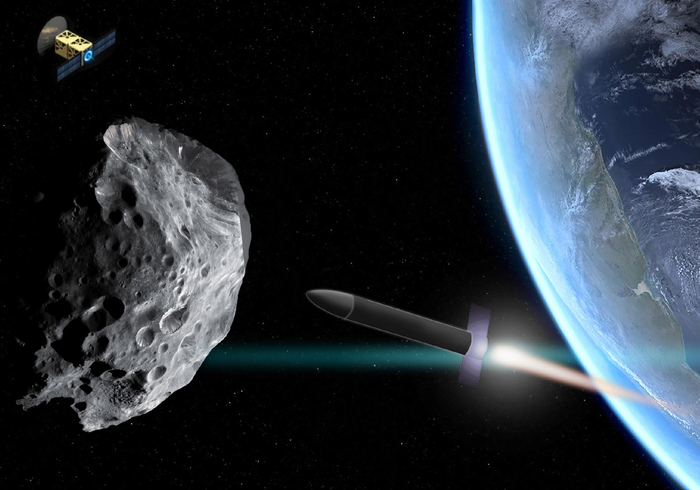 动能撞击:最主流的技术,通过高速撞击器改变小行星的动量,从而微调其轨道。NASA的**DART(双小行星重定向测试)**任务就是典型代表。